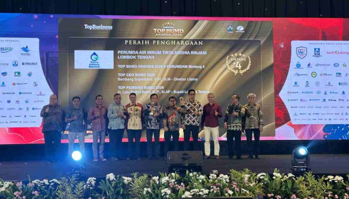 Edisi media– Perumda Air Minum Tirta Ardhia Rinjani Kabupaten Lombok Tengah merupakan satu-satunya PDAM di NTB berhasil meraih penghargaan TOP BUMD Bintang 4 pada ajang TOP BUMD Awards 2026 yang diselenggarakan oleh Majalah Top Business bekerja sama dengan MSI Group. Kegiatan tersebut berlangsung di Hotel Raffles, Kuningan, Jakarta Pusat, Senin (13/4/2026).